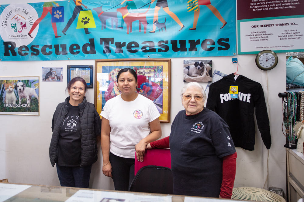 Rescued Treasures Thrift Store started over 20 years ago and is the major support for Shelter on the Hill Animal Care Center. It started out by volunteer Sally Erikson who opened the doors on day one with a cashbox, a few items to sell and made $200. It has been the little thrift store that could and now occupies three spaces in the Galt Center in downtown Frazier Park. The thrift store offers a variety of household goods, clothing and furniture. It also offers a great bookstore! Donations of gently used items are very much appreciated. Proceeds from the sales support the SOTH dogs snd cats. Stop by on Tuesday through Saturday and see what treasure awaits! We are located at 3536 Mt Pinos Way, Frazier Park.